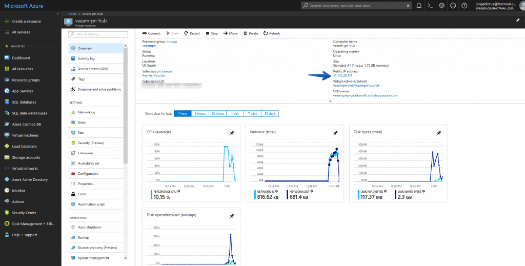 Personally I like the view of Virtual Machines better, if we click on our new VM, we will see details of the VM, including the public IP that will be useful very soon: