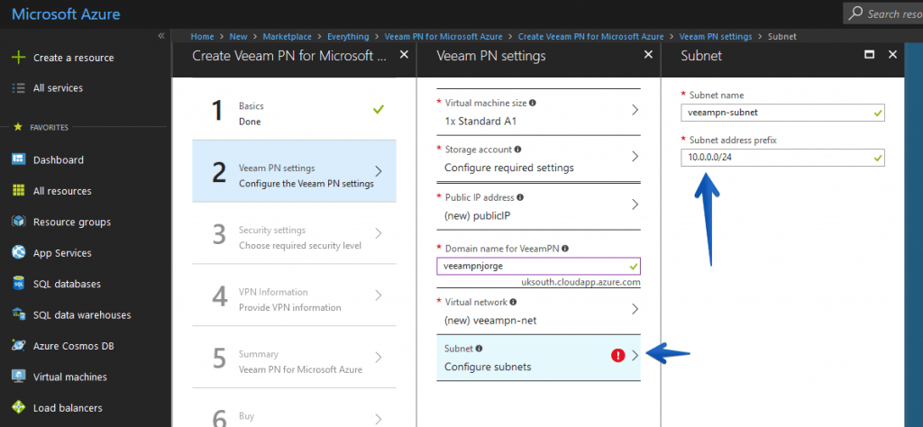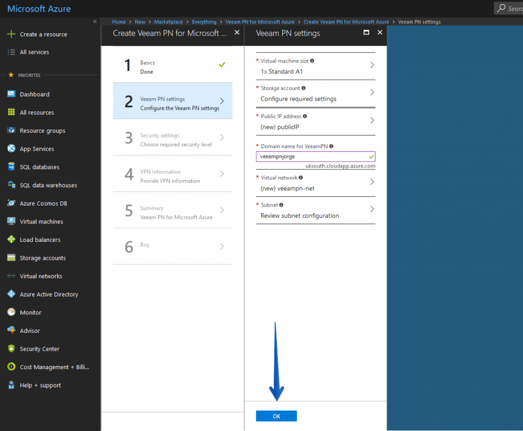 This step of configuring the VPN could also be site-to-site, so that my entire internal network is connected to Microsoft Azure, simply deploy a Veeam PN and configure it as a site gateway, I leave it to your liking.