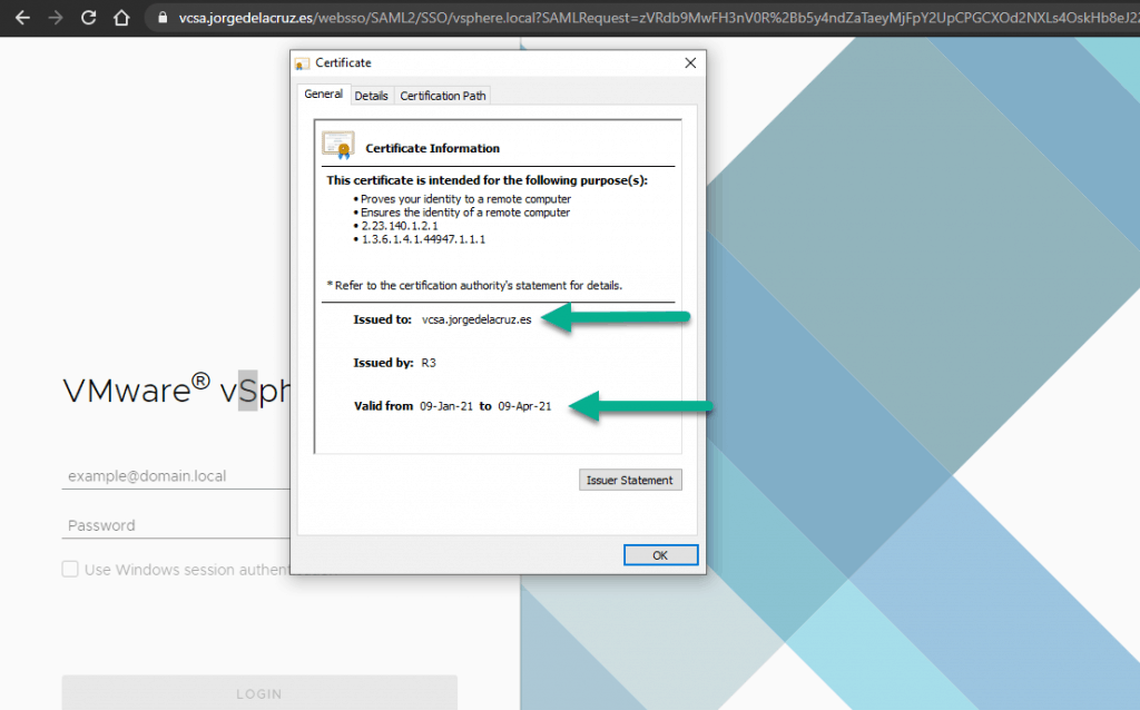Check that our VCSA already has the new valid SSL Certificate