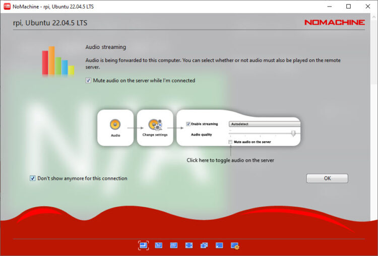 From this point onwards, it has some questions that personally I would mark to not showing it anymore, very useful to get used to the app, like how to show the menu of NoMachine: