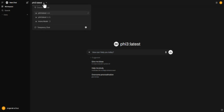 And then, the grand finale. Look at that great experience, you can choose your models, you can have different conversations. I mean similar to what OpenAI offers, but all is free, open source, private, and on running on your own hardware, mind-blowing: