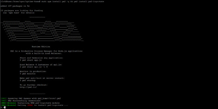As this is a standalone web app, I am sure we want to run it on the background, and also on startup of the server, for that we are going to need PM2, it is easy to install as well: