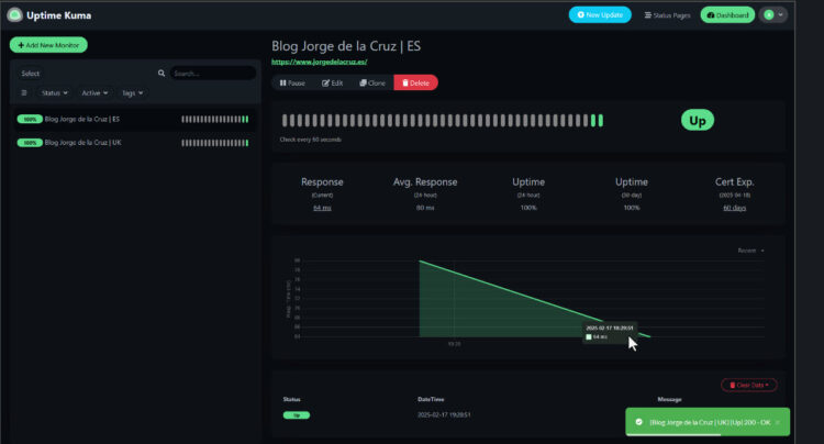 That’s it, to me Uptime Kuma it has been a before and after. This product is so simple, yet powerful, on another blog entries we will see a bit more into deep configuration, but so far, I will totally recommend you to start playing with it, and monitor all the things!