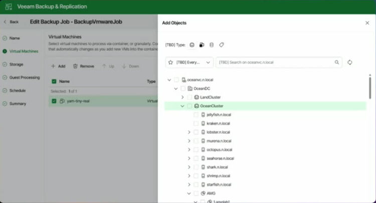 Or for example when creating a backup job, the view where we can select the source from different types, including filters, search bar, etc.: