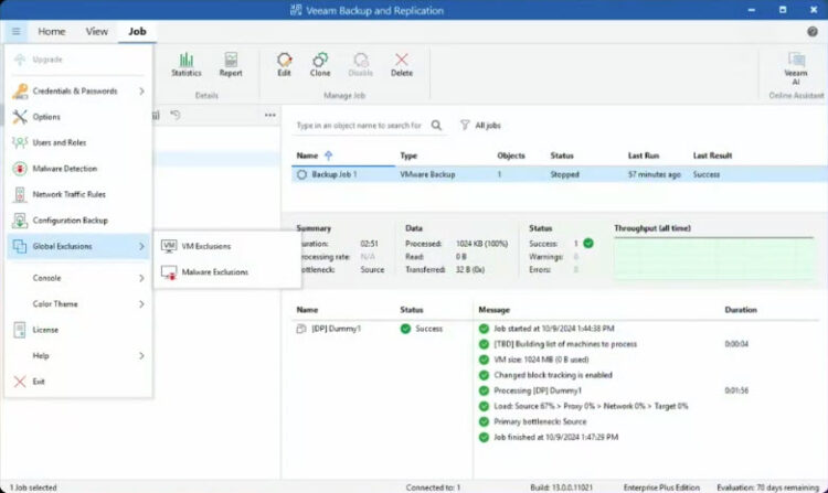 As Veeam is utilising latest Microsoft .NET libraries, now a dark theme is supported as well for those whom prefer something less bright in their eyes. Of course the job graphs, or anything that include green/red are truly visual and easy to spot: