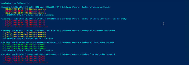 # Global Parameters (Edit here) $SQLServer = "YOURSQL\INSTANCE" $SQLDBName = "VeeamONE" $reportIntervalDays = 3 $requiredFailureCount = 3 $RecipientEmail = "[email protected]" $TenantId = "YOURTENANT.onmicrosoft.com" $ClientId = "YOURCLIENTIDAZURE" $ClientSecret = ConvertTo-SecureString "YOURAPPREGISTRATIONSECRET" -AsPlainText -Force