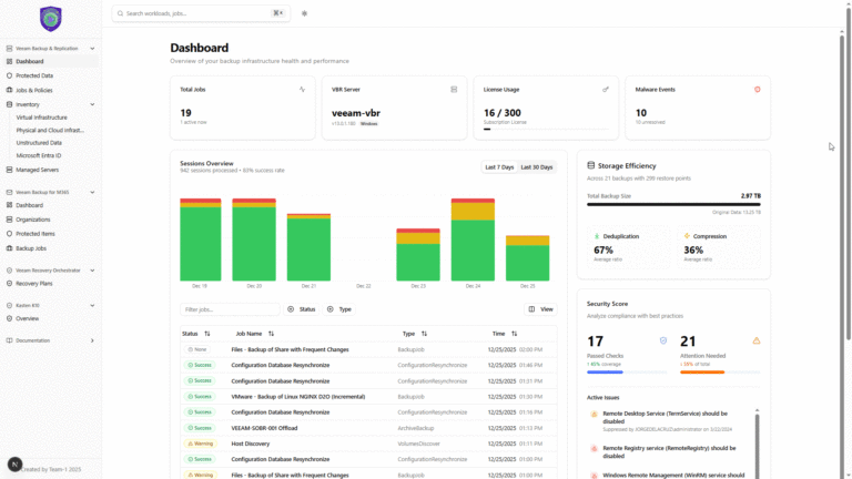 Greetings friends, for years I have been writing about Veeam APIs. I have done many fun projects: Grafana Dashboards, HTML Reports, PowerShell Scripts, etc. This year, while participating at the third Veeam Community Hackathon, a new project (and a new opportunity) appeared. Why not to try to build an open-source, fresh, and single-UI for multiple